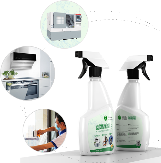 可用于機械設備、五金加工等生產中的各種嚴重油污。也可用于地板、墻壁、車輛、汽車零部件、瓷器及外墻玻璃等普通污漬的清洗。